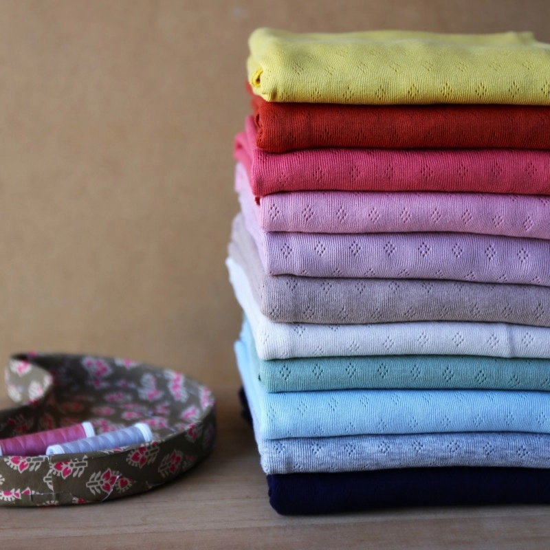 Ta piękna, miękka dzianina z klasycznym, małym motywem diamentowym jest idealna na delikatne topy, sukienki, ubrania niemowlęce i akcesoria - koce, otulacze i inne.
