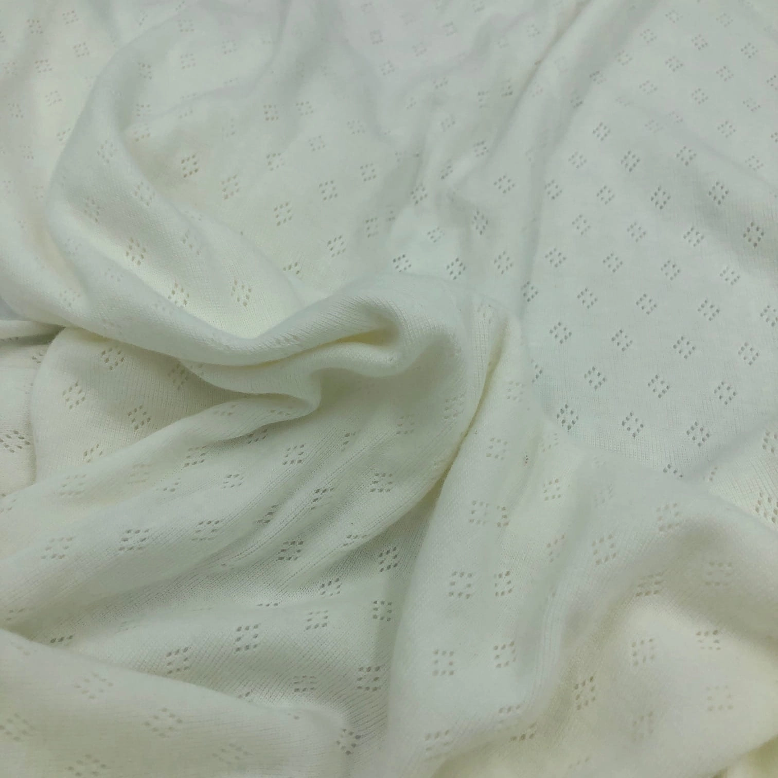 Ta piękna, miękka dzianina z klasycznym, małym motywem diamentowym jest idealna na delikatne topy, sukienki, ubrania niemowlęce i akcesoria - koce, otulacze i inne.
