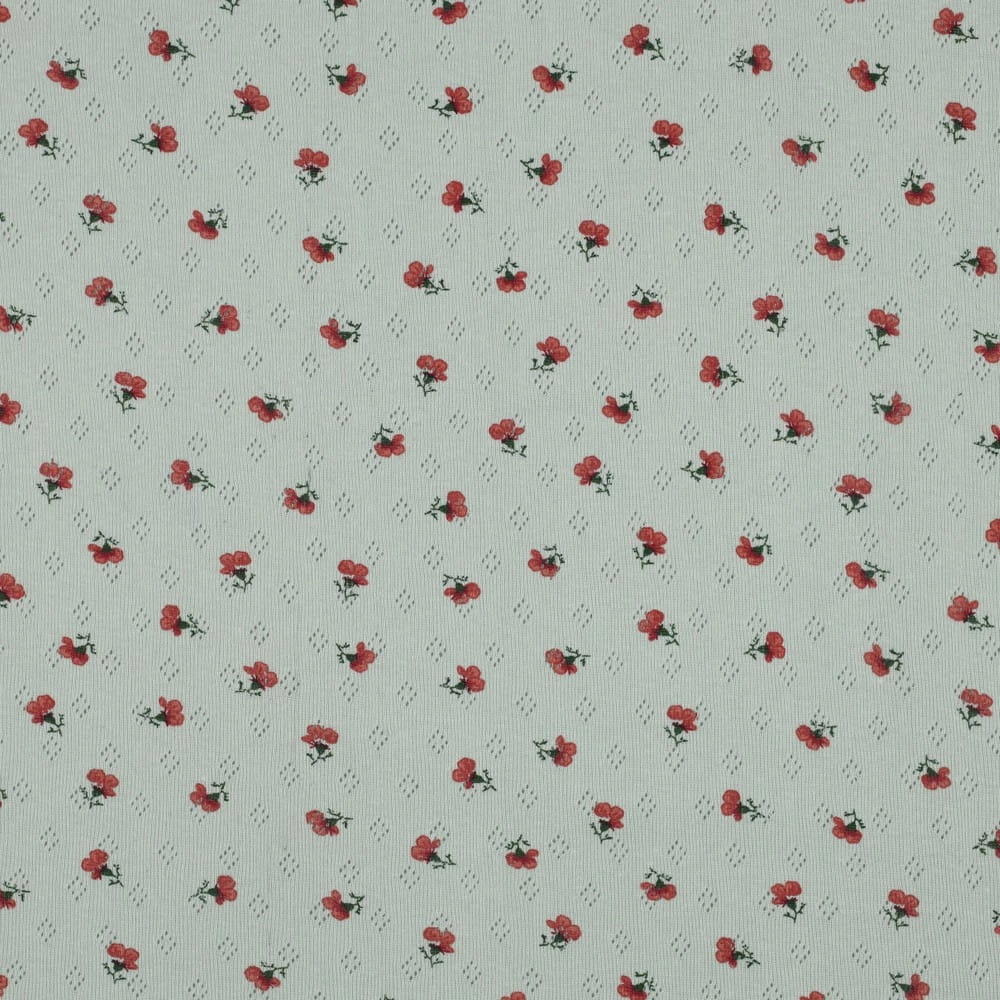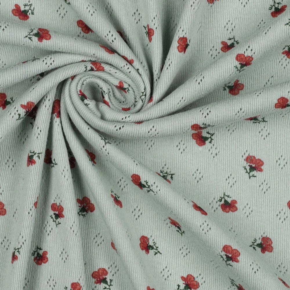 Dzianina Jersey Pointelle w Kwiatki - Mięta