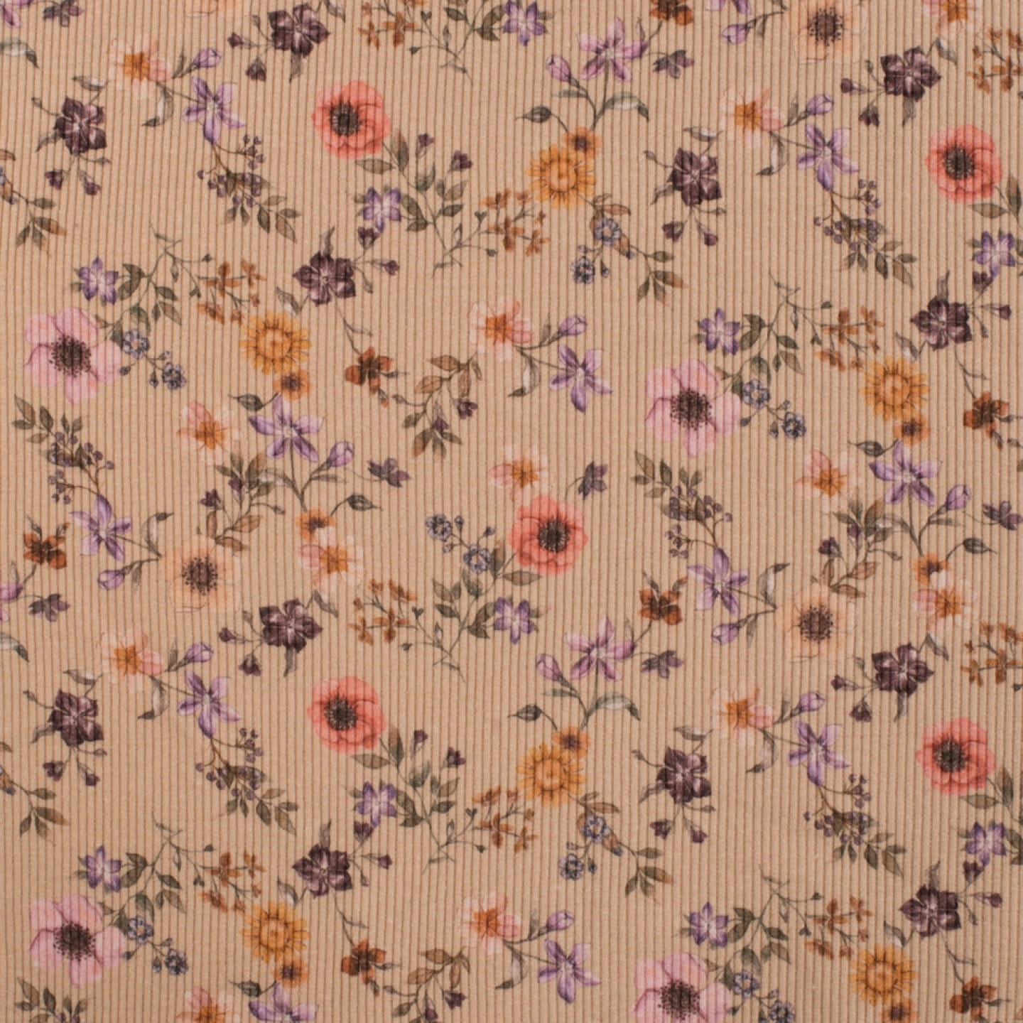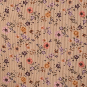Urocza dzianina prążkowana w kwiatuszki. Nadruk cyfrowy.
