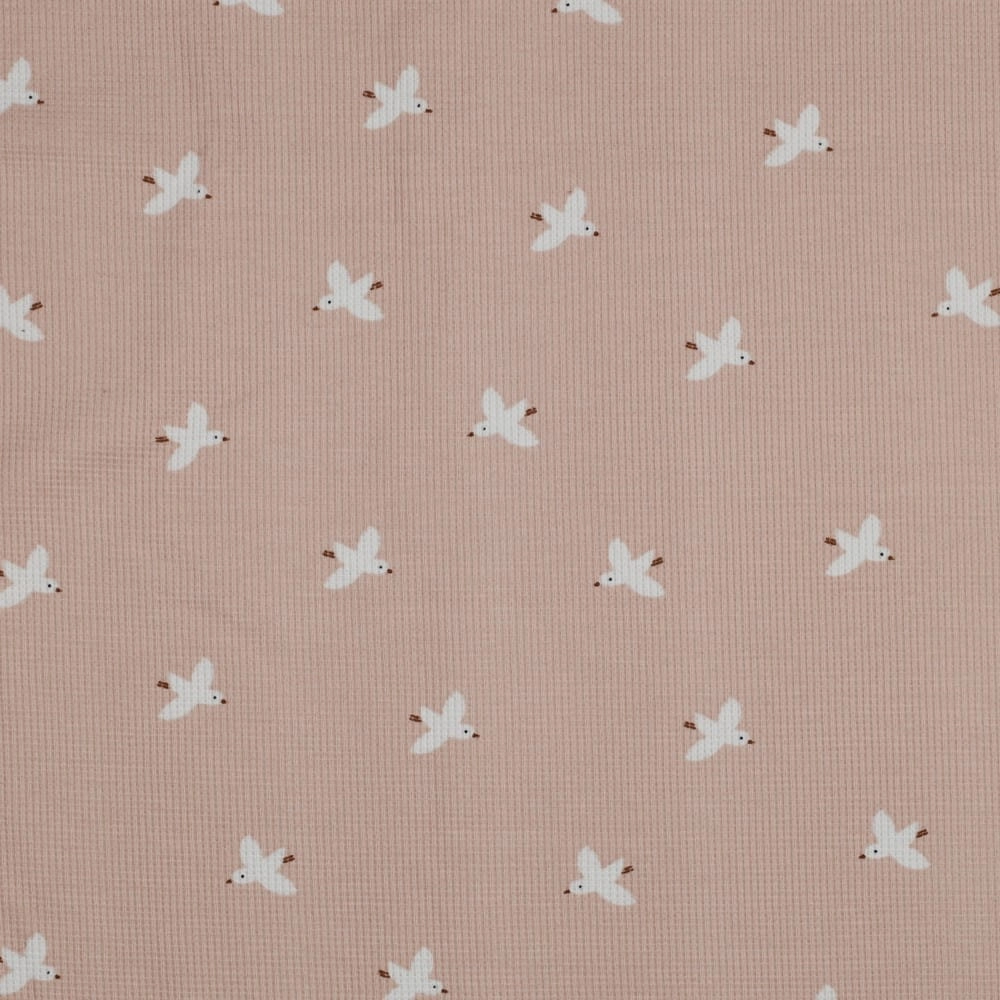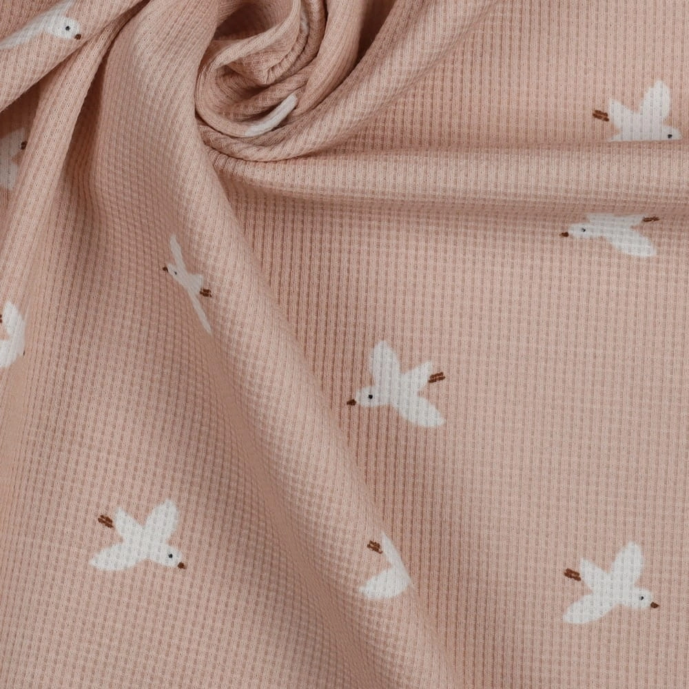 Jersey Materiał Wafelek W Ptaszki - Jasnoróżowy