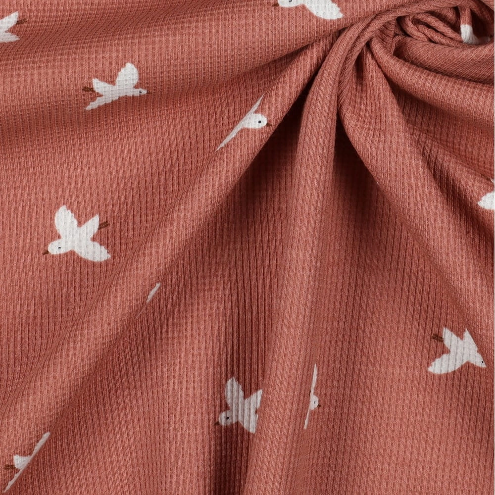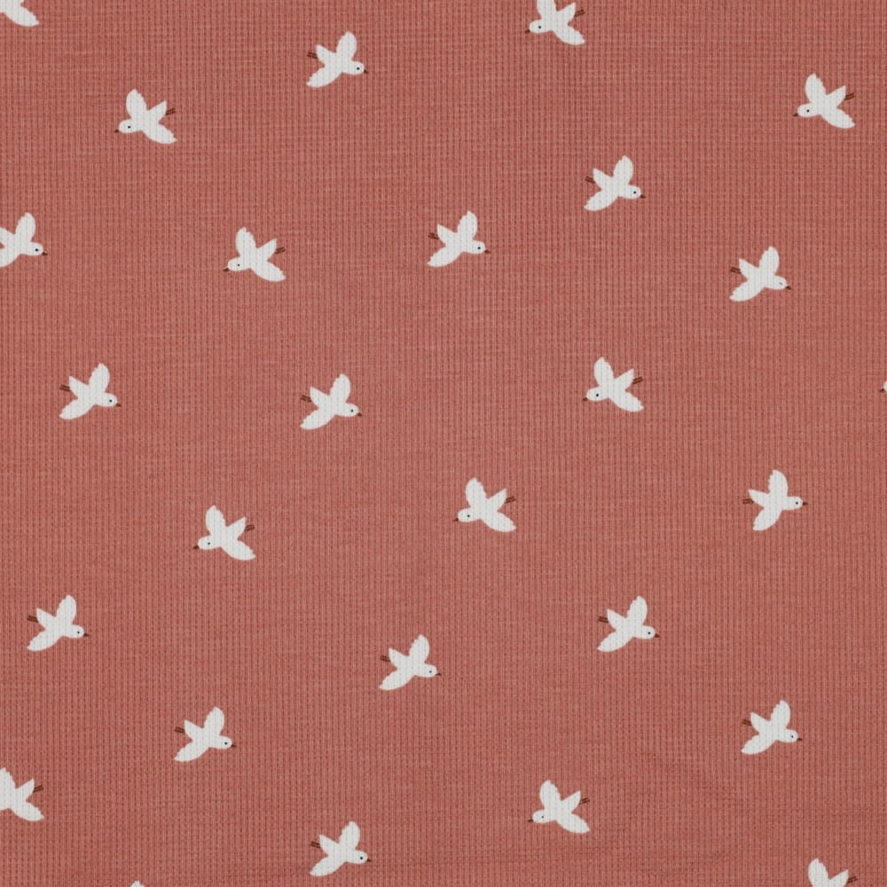 Jersey Materiał Wafelek W Ptaszki - Różowy