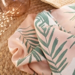 Duże liście palmowe „Cactus” są dostępne na dwukolorowym tle z abstrakcyjnymi kształtami „Blush” i „Off-White”.