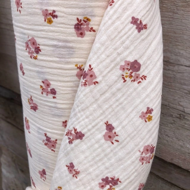 Muślin Double Gauze Kwiatuszki Mili - Waniliowy