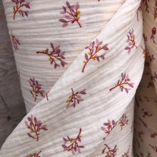 Muślin Double Gauze Kwiatuszki Twigs - Waniliowy