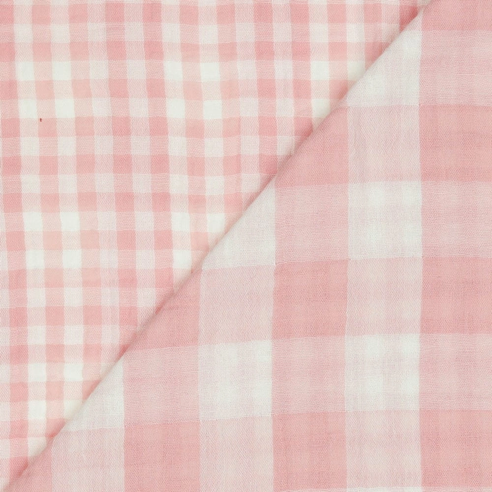 Muślin Bawełniany Krata Vichy - Dwustronna Duża i Mała - Pudrowy Róż