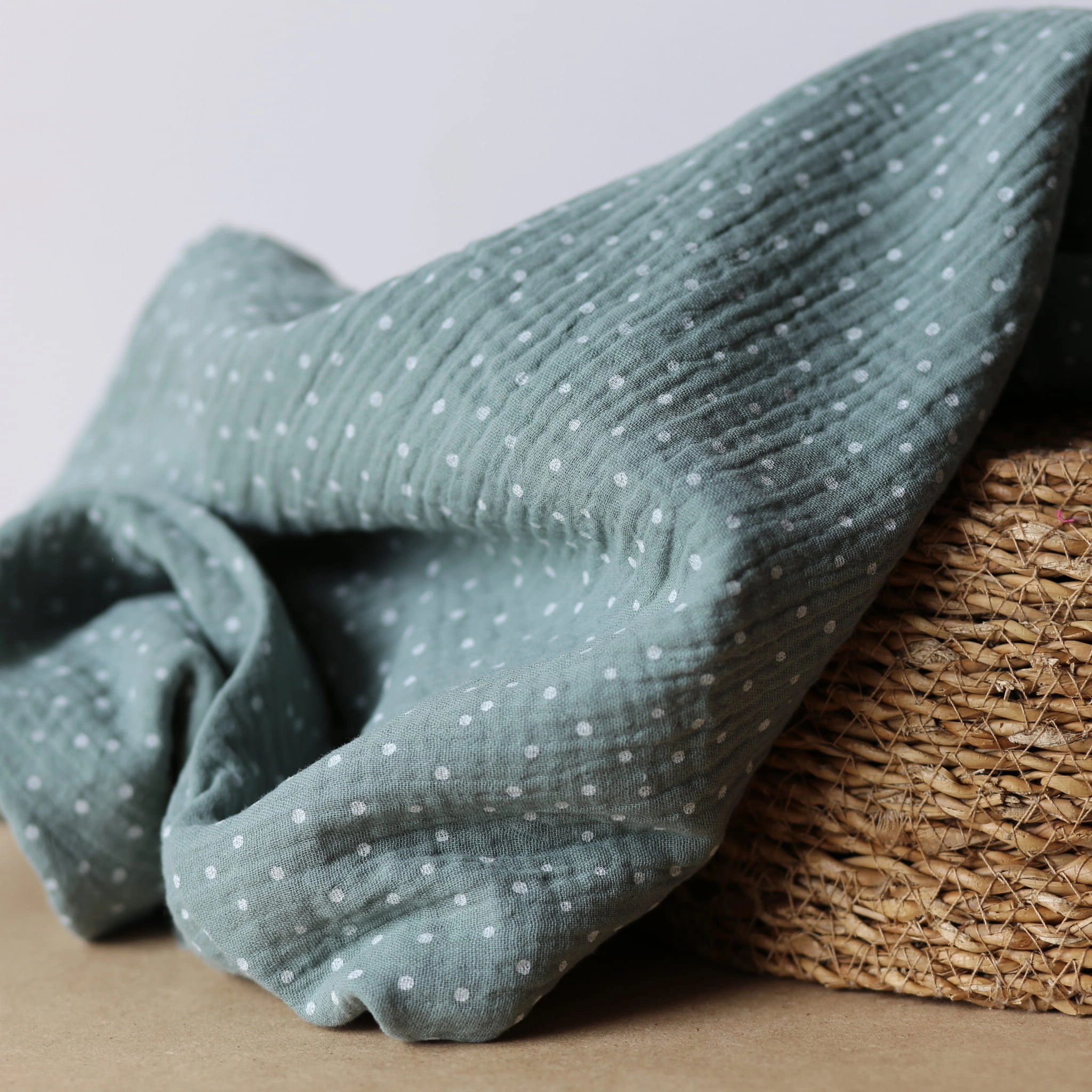 Muślin w kropeczki - Zgaszona Zieleń