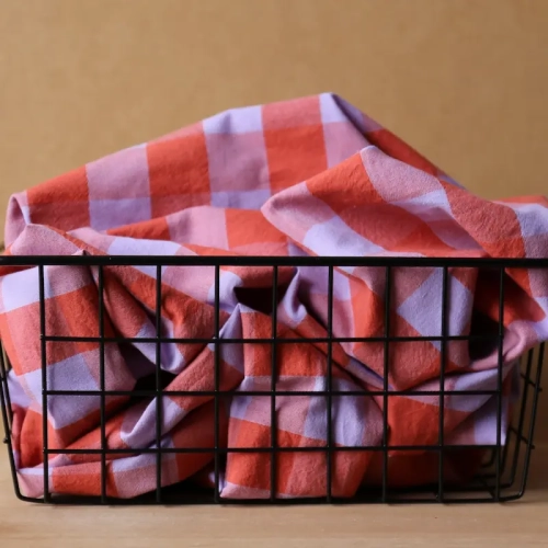 Tkanina Bawełniana Uprana w Kratkę - Lawenda/Pomarańcz