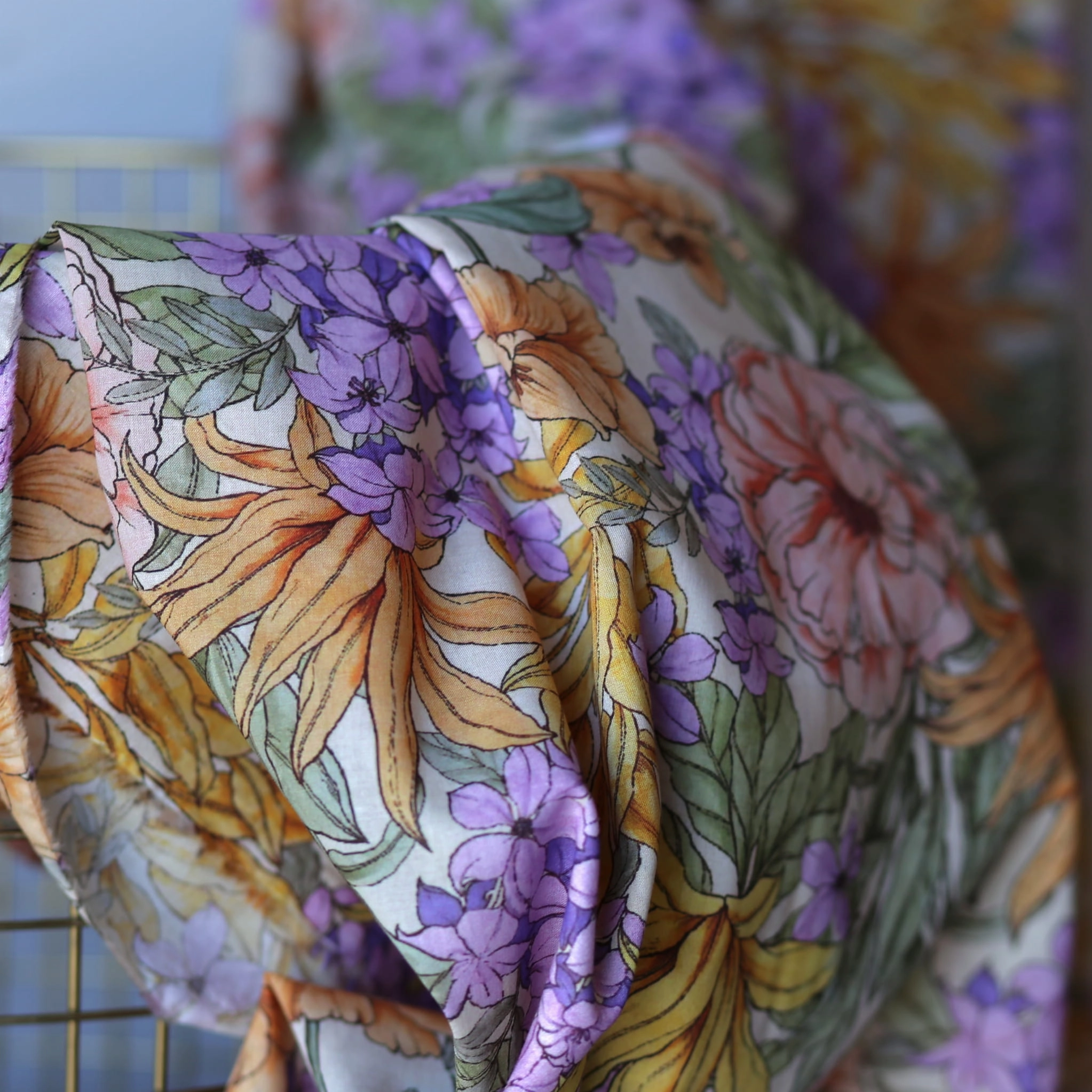Delikatny, najwyższej jakości batyst w kwotowy wzór.