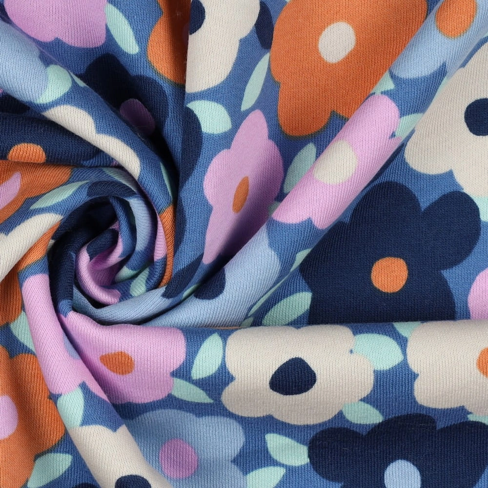 Gruba Dzianina Drapana w Kwiaty - Niebieska
