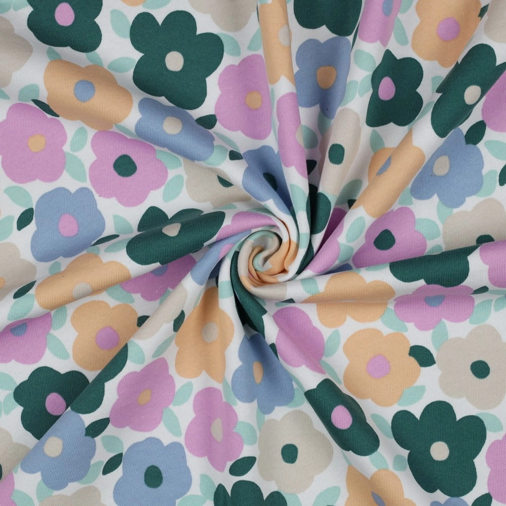 Gruba Dzianina Drapana w Kwiaty - Śmietanka