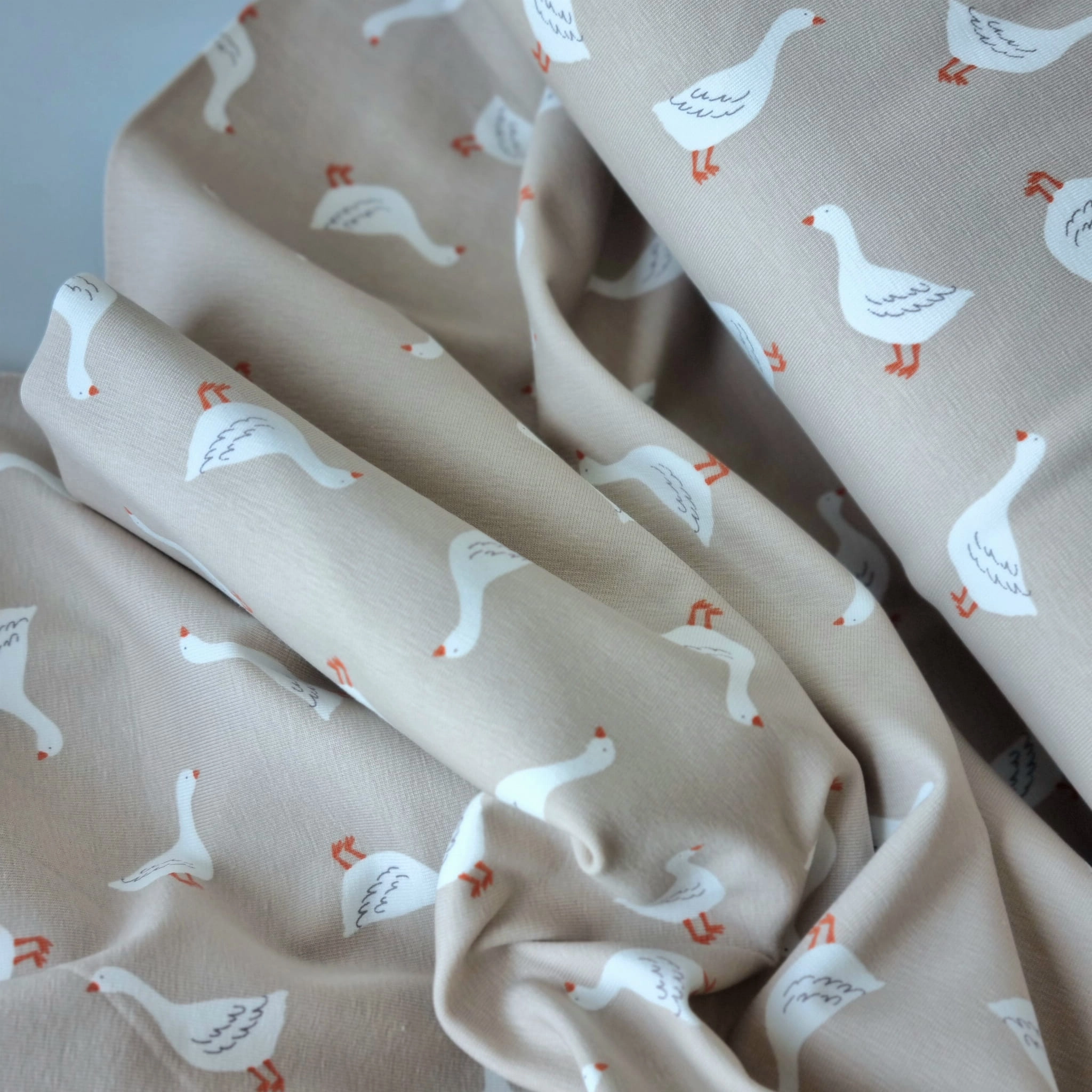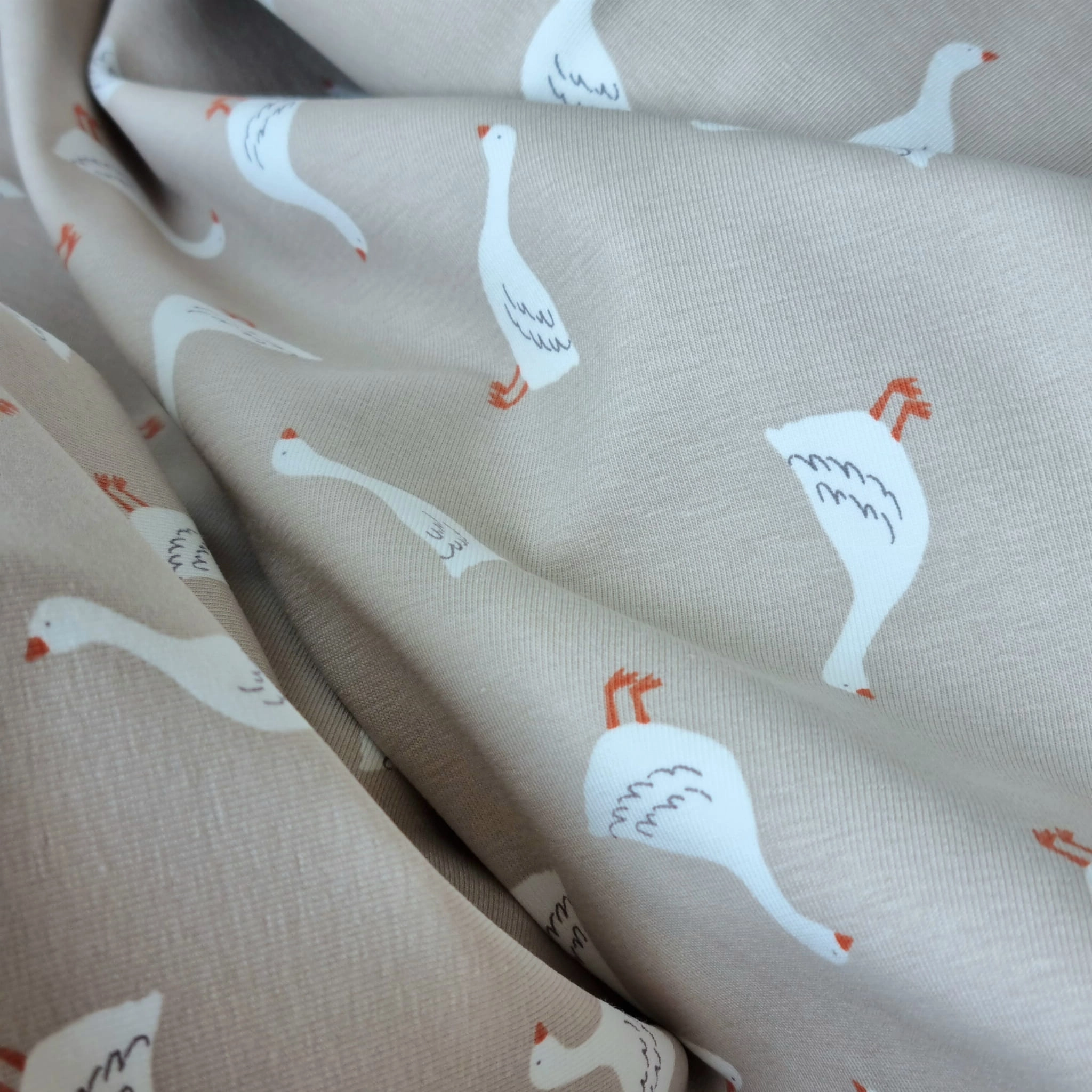 Dzianina Jersey z Motywem Gąsek Certyfikatem Oeko-Tex 100