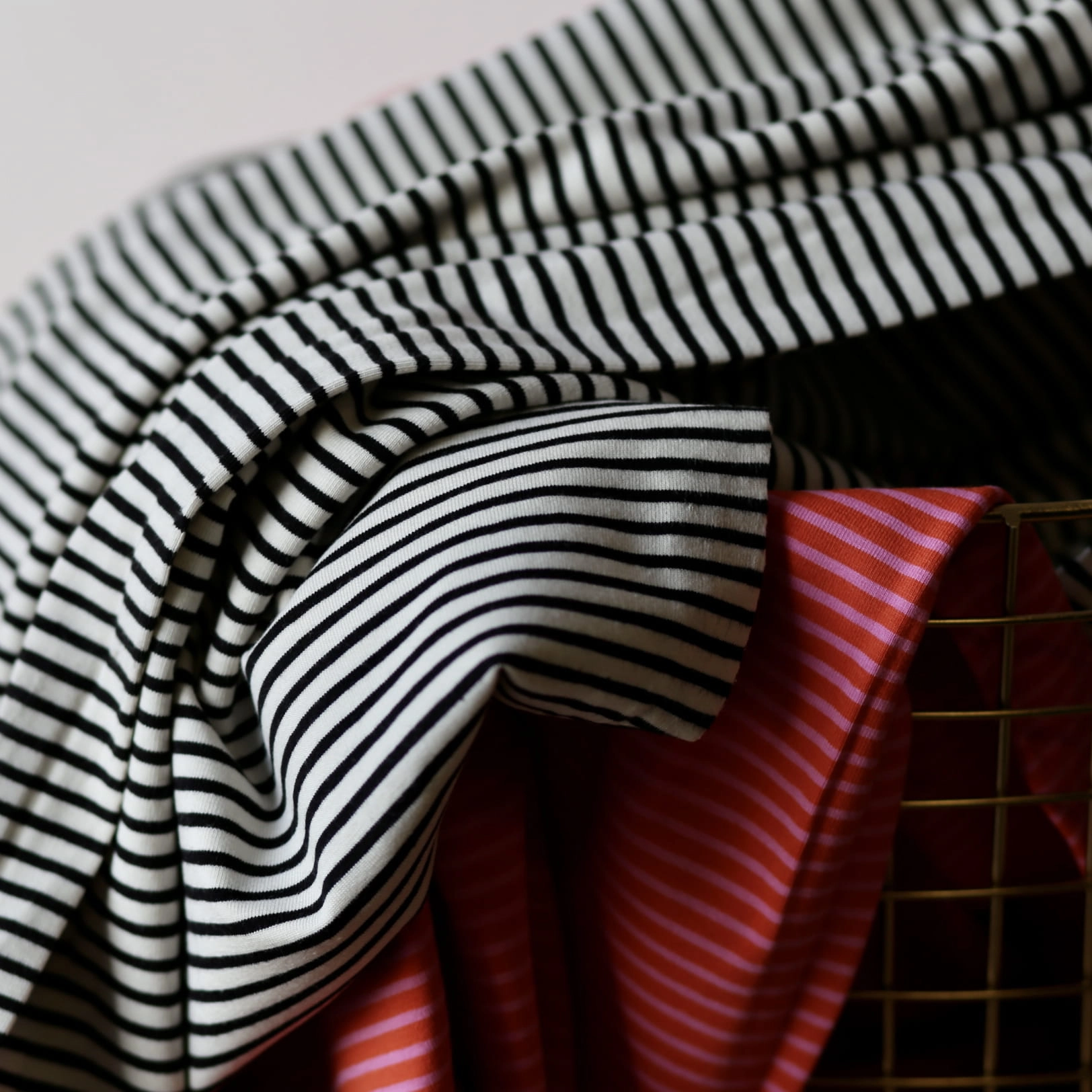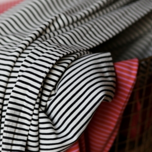 Jersey Bawełniany W Paski Drobne Ecru/Czarne