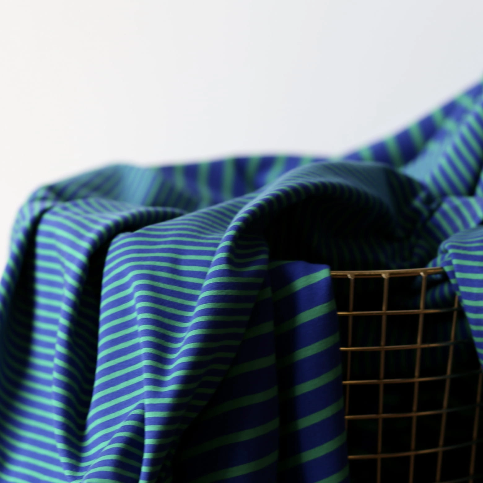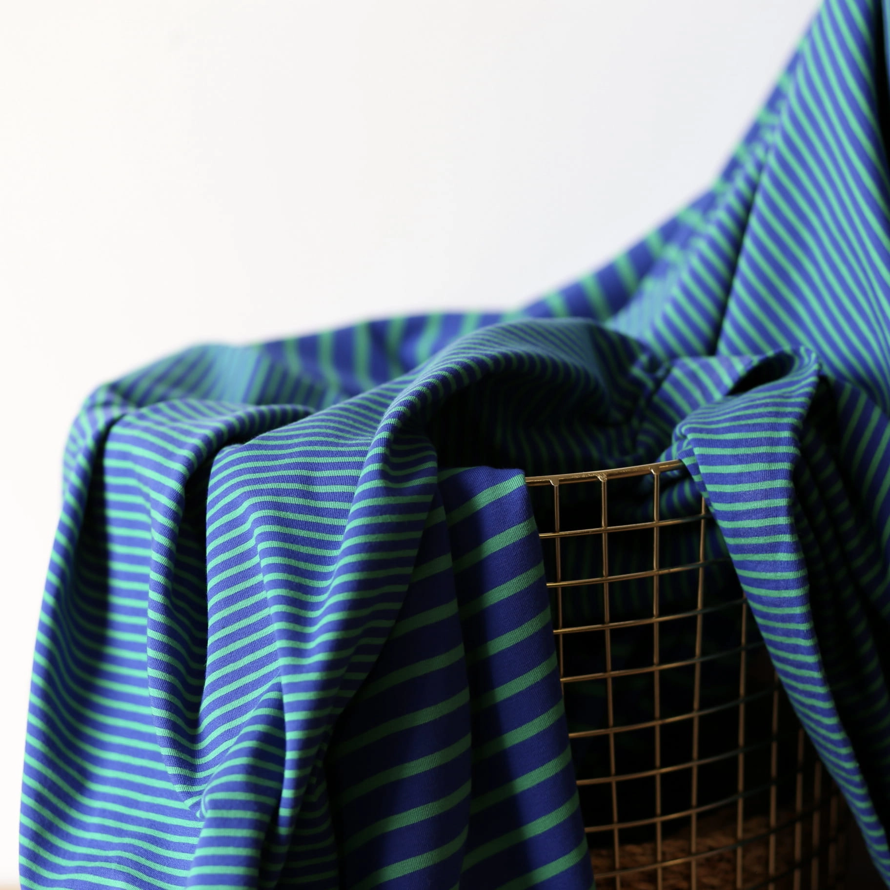 Jersey Bawełniany W Paski Drobne Kobalt/Zieleń