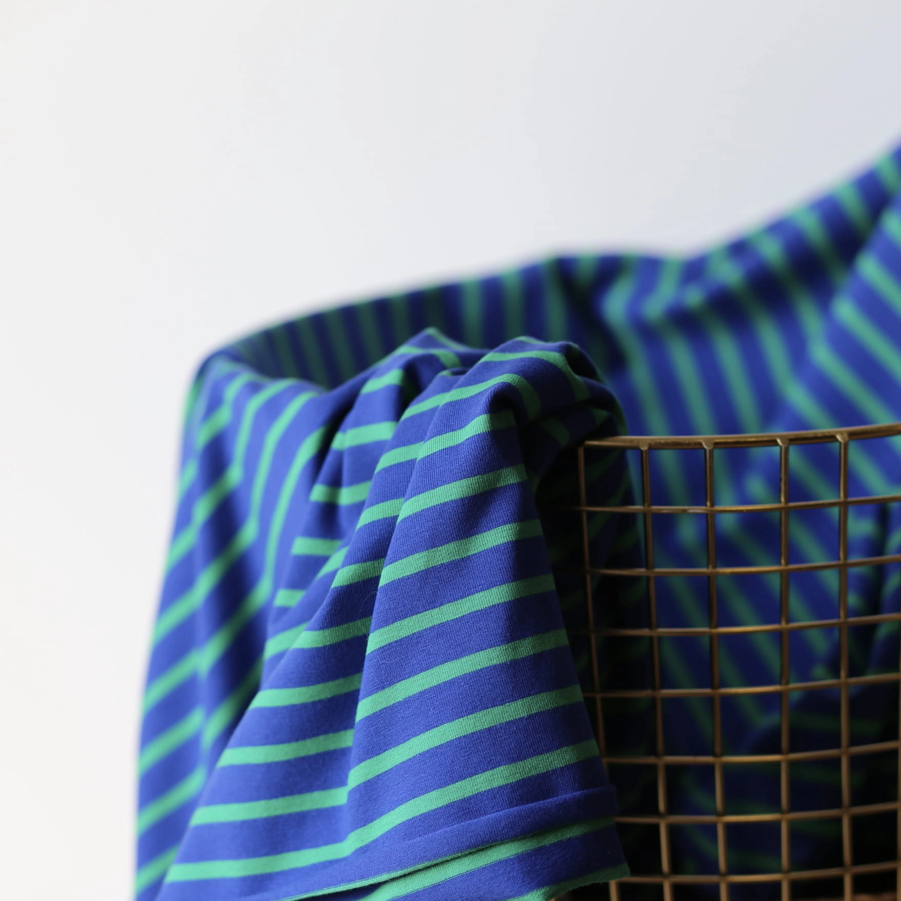 Jersey Bawełniany W Paski Kobalt/Zieleń