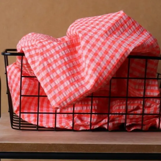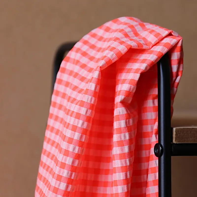 Tkanina Kreszowana Kratka Vichy - Oranżada to wszechstronna tkanina, która łączy estetykę z funkcjonalnością, idealna do wielu projektów krawieckich.