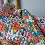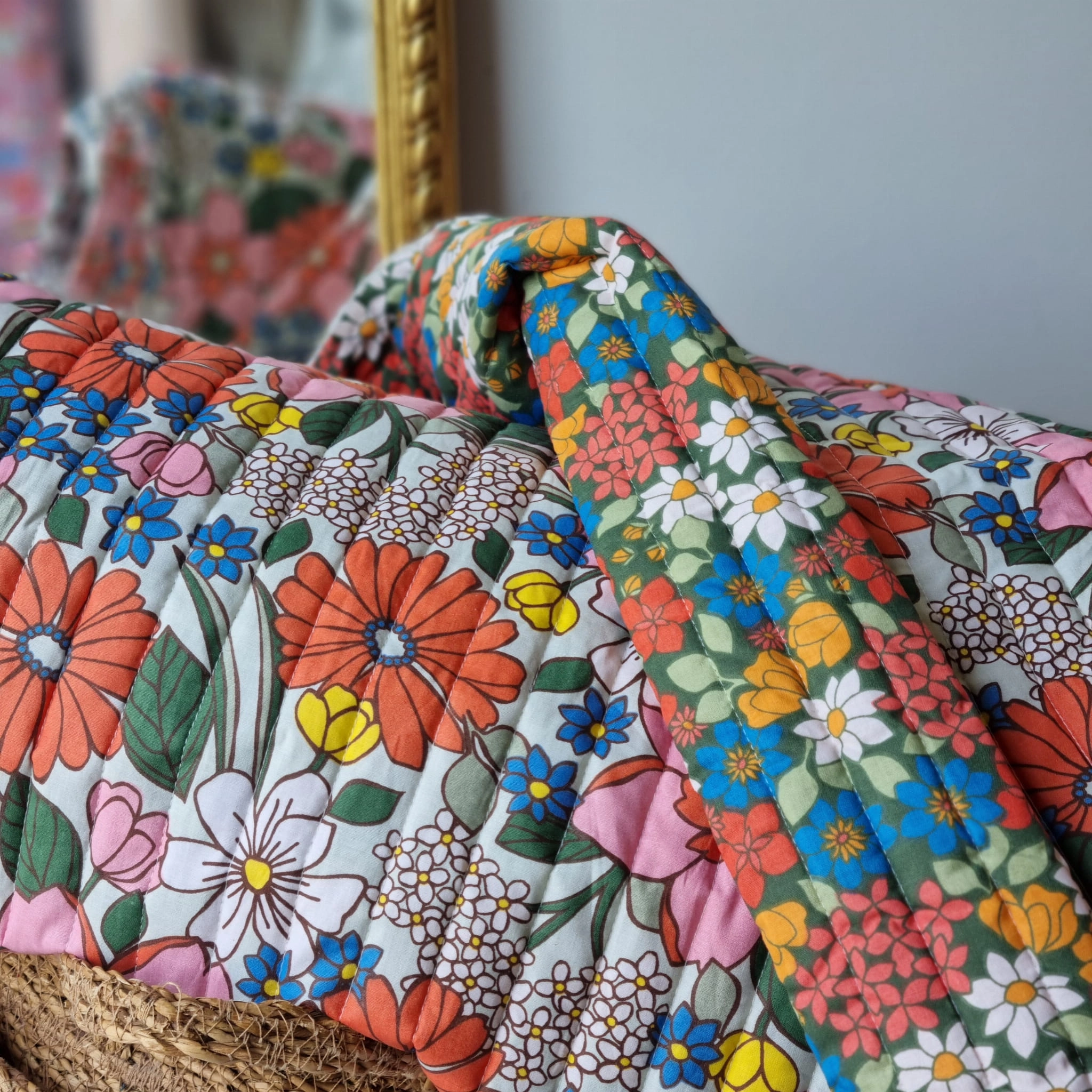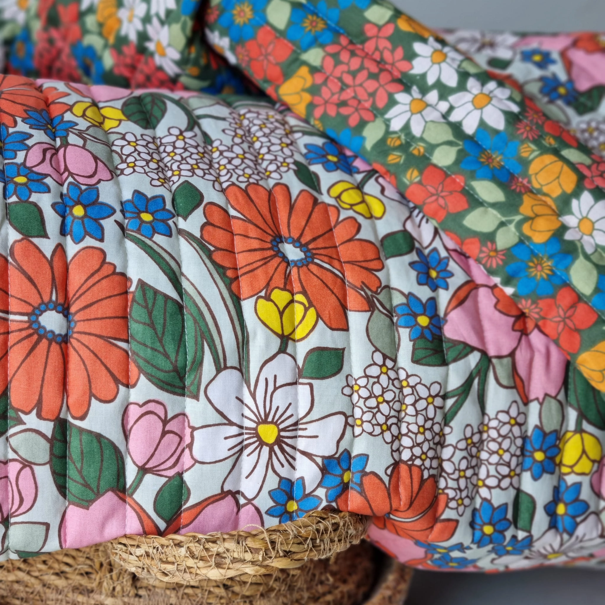 Tkanina pikowana, wypełniona lekką watoliną. Każda ze stron to inny, idealnie pasujący do drugiej wzór :)