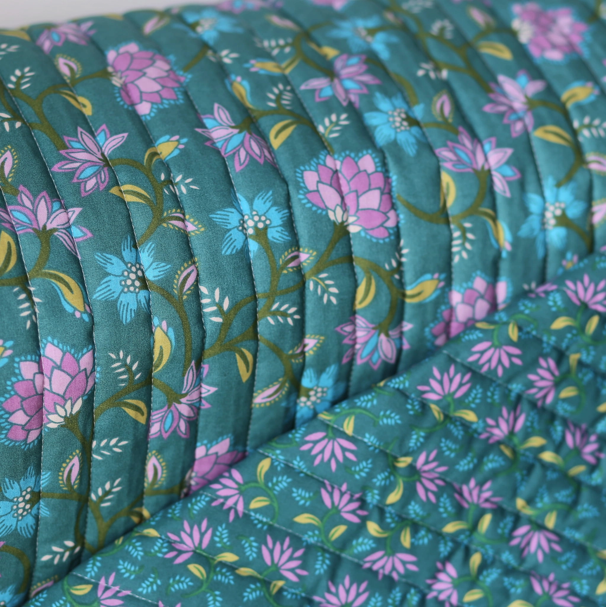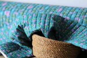 Tkanina pikowana, wypełniona lekką watoliną. Każda ze stron to inny, idealnie pasujący do drugiej wzór :)