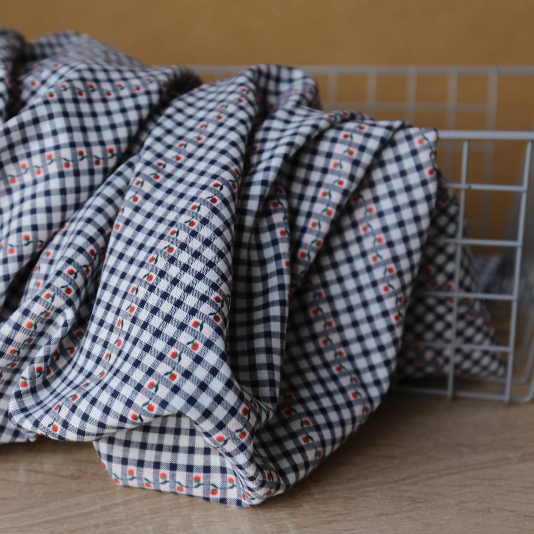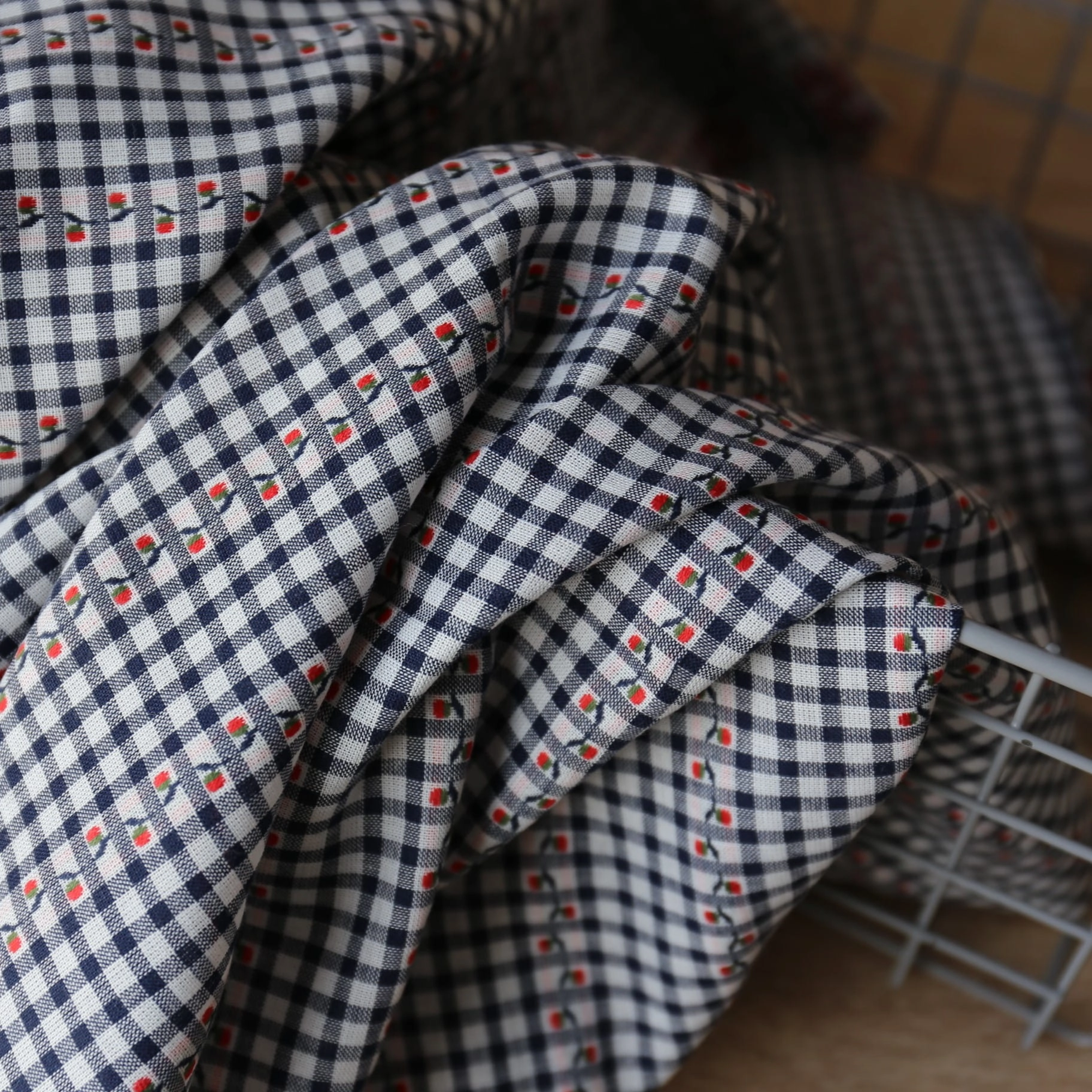 Tkanina W Kratkę Z Wisienkami - Granatowa