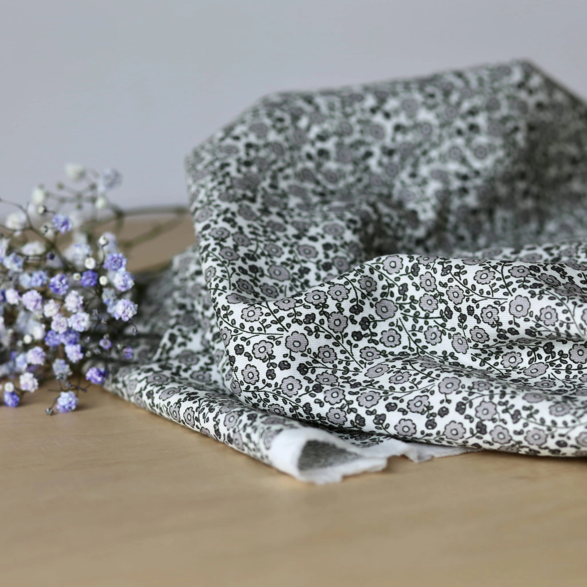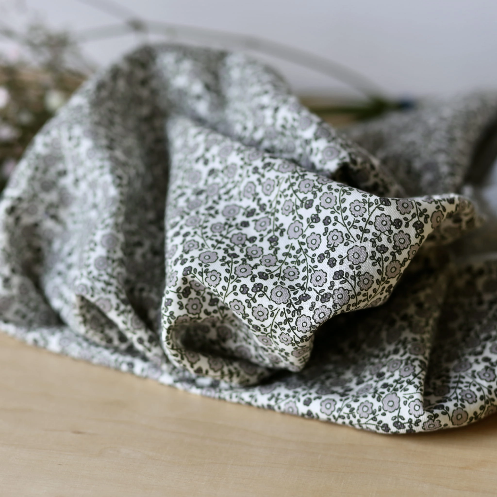 Twill Bawełniany w Kwiaty Losli - Szara