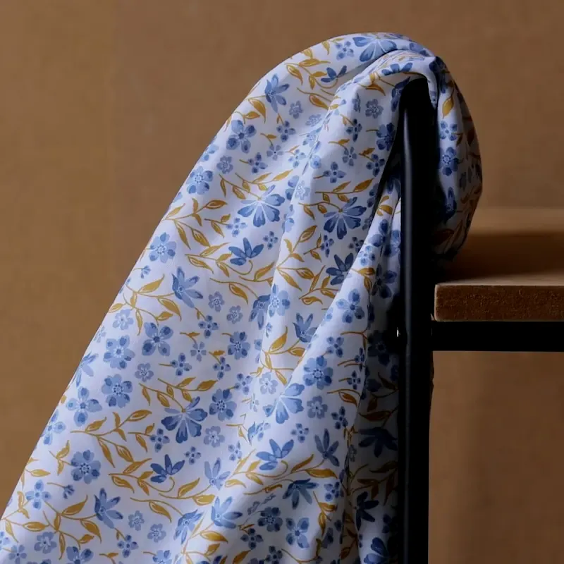 Wprowadź powiew świeżości do swoich projektów dzięki niebieskiej popelinie bawełnianej Poppy Fabrics. Tkanina ta wyróżnia się gęstym, regularnym wzorem typu "łączka", gdzie drobne niebieskie kwiatuszki harmonijnie łączą się z listkami w kolorze musztardowym lub ochrowym. To klasyczna i niezwykle stylowa kompozycja, która nadaje projektom szlachetnego charakteru.