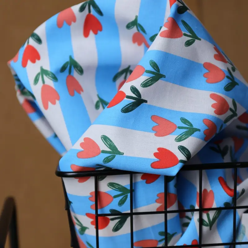 Popelina Bawełniana Tulipany Na Paskach