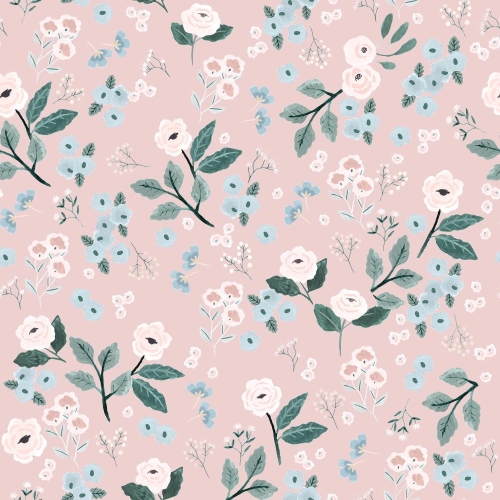 Tkanina 100% bawełniana z nadrukiem w kwiaty na błękitnym tle.