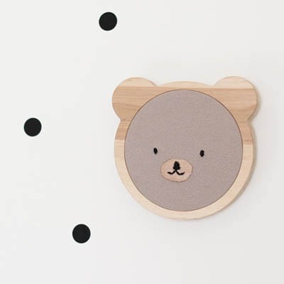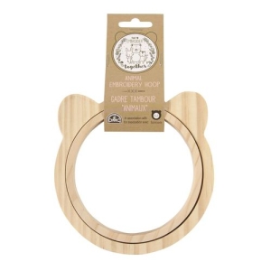 Wykonany z drewna tamborek, przypominający głowę zwierzaka.