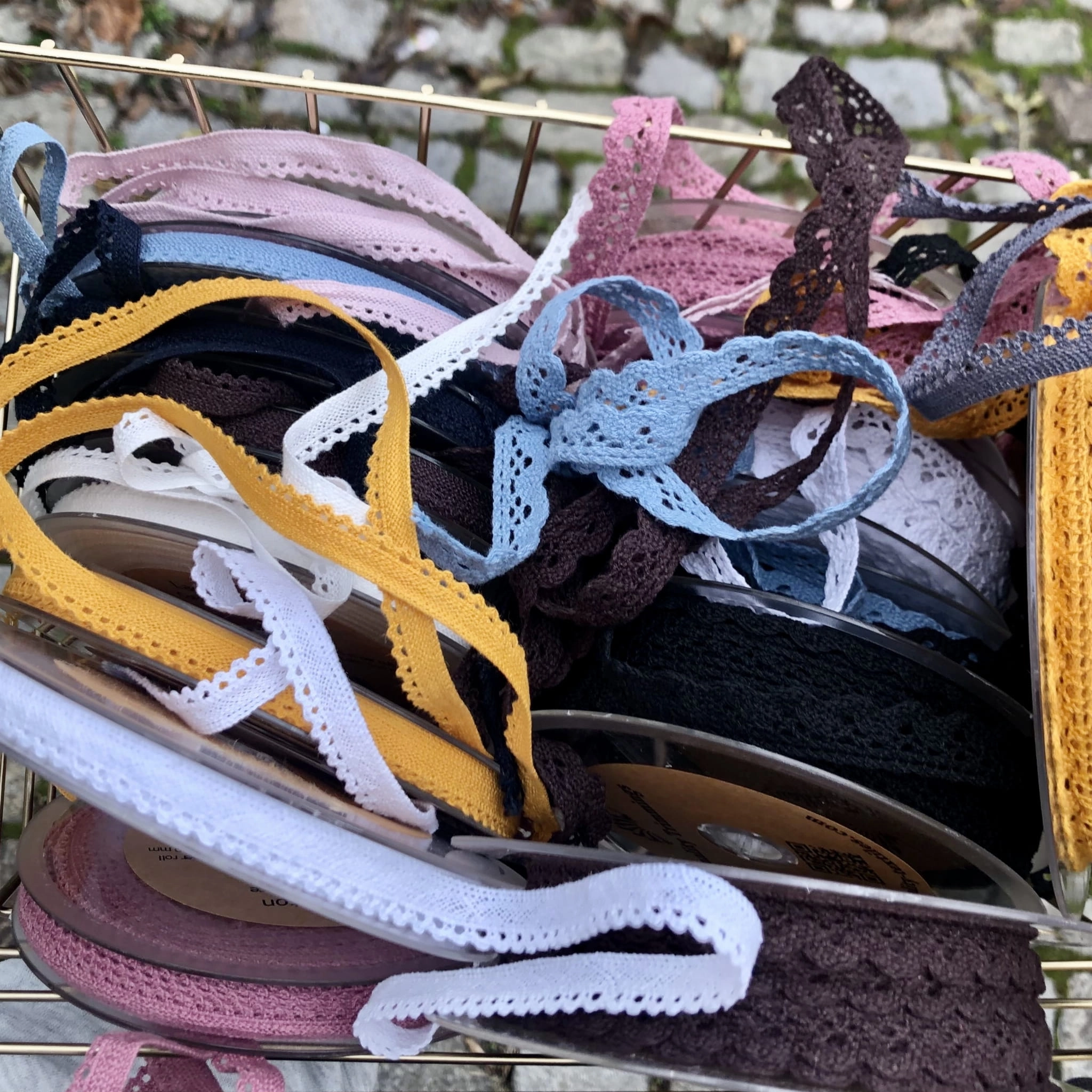 Śliczna bawełnina koronkowa tasiemka w kolorze granatowym. Idealna na wykańczanie obrusów, sukienek, bielizny.