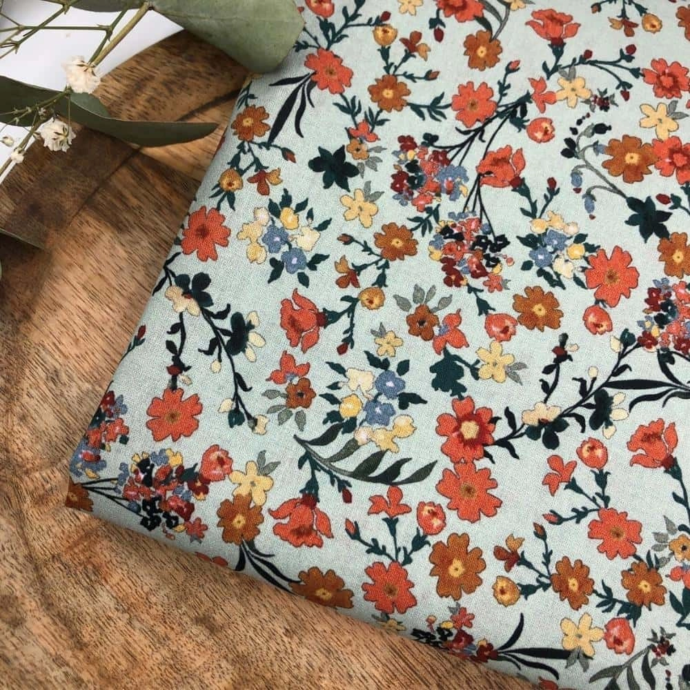 Tkanina Bawełniana W Kwiaty Sauma - Miętowa