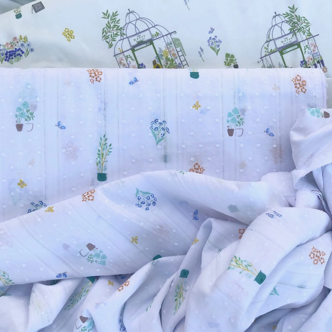 Plumeti bawełniane 100% bawełniane z pionowym haftem; lekka, chłodna i miękka tkanina.