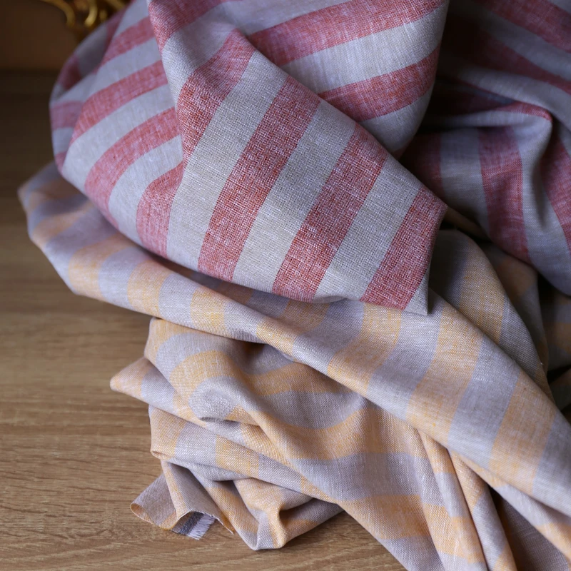 Przedstawiamy tkaninę "Rapsody" w nowej, wyrazistej odsłonie: Czerwień i Naturalny. To odważne połączenie klasyki z nowoczesną energią, gdzie głęboka, nasycona czerwień spotyka się ze spokojem naturalnego odcienia lnu. Ten ponadczasowy wzór w pasy to propozycja dla marek i twórców, którzy pragną nadać swoim projektom wyrazistego charakteru, nie rezygnując przy tym z naturalności i najwyższej jakości.