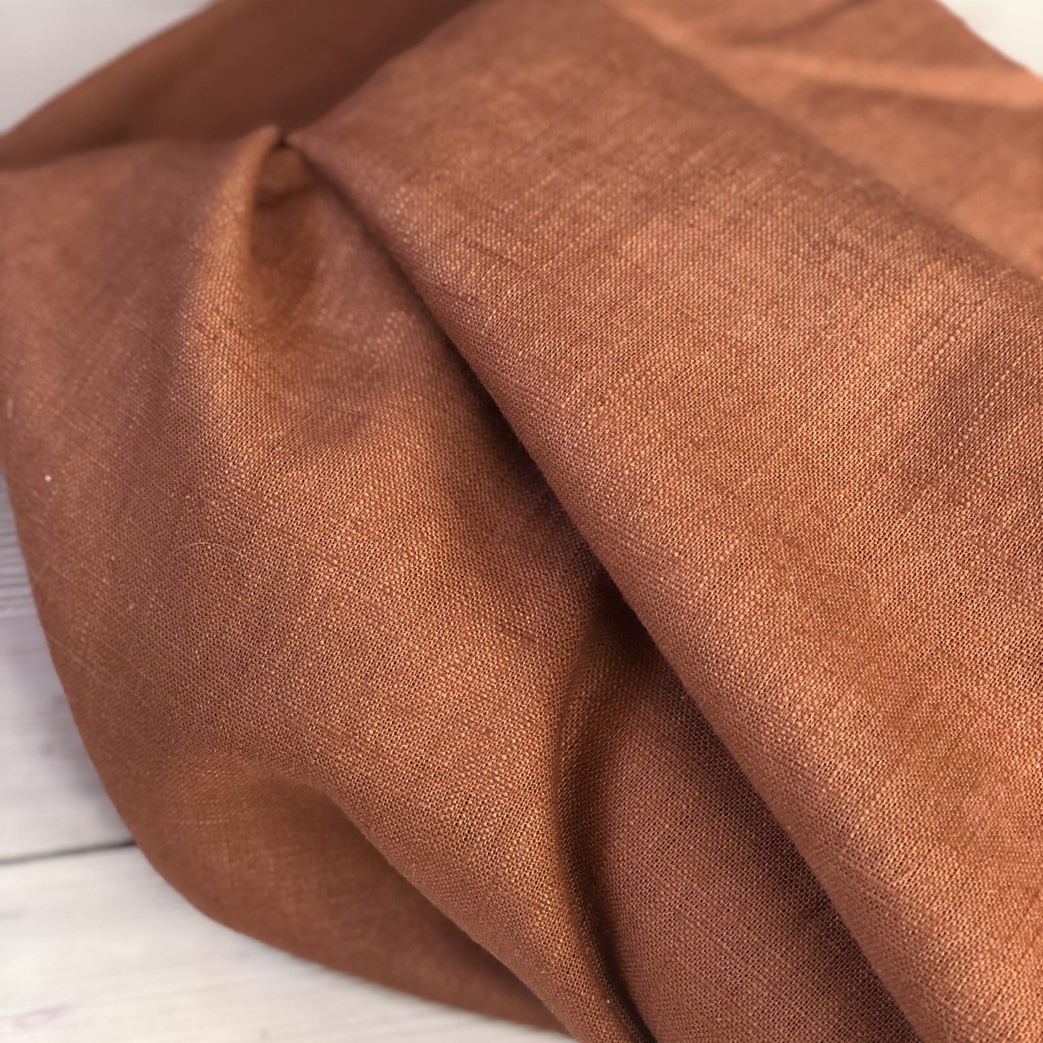 Tkanina Len Prany Fibi - Cynamonowy Brąz