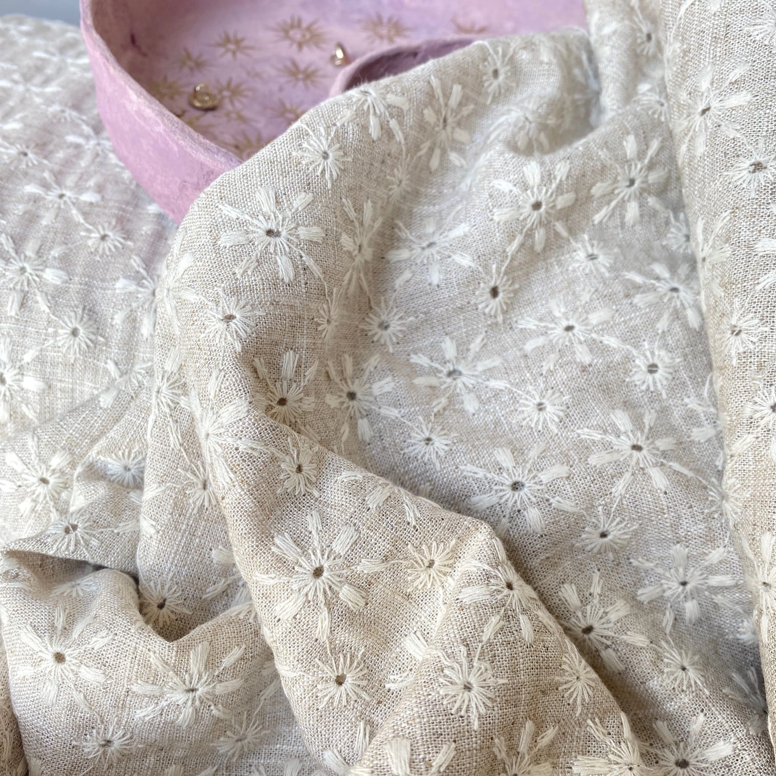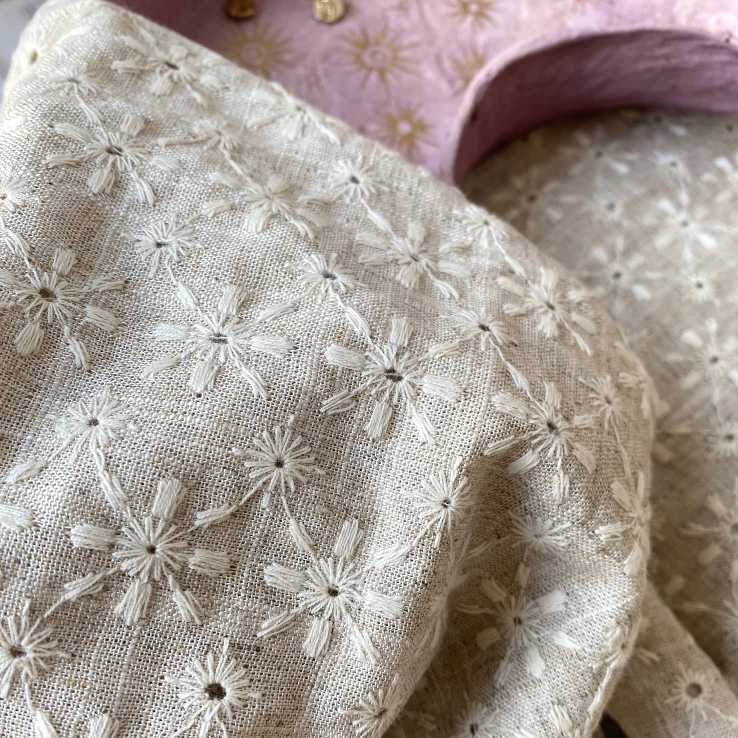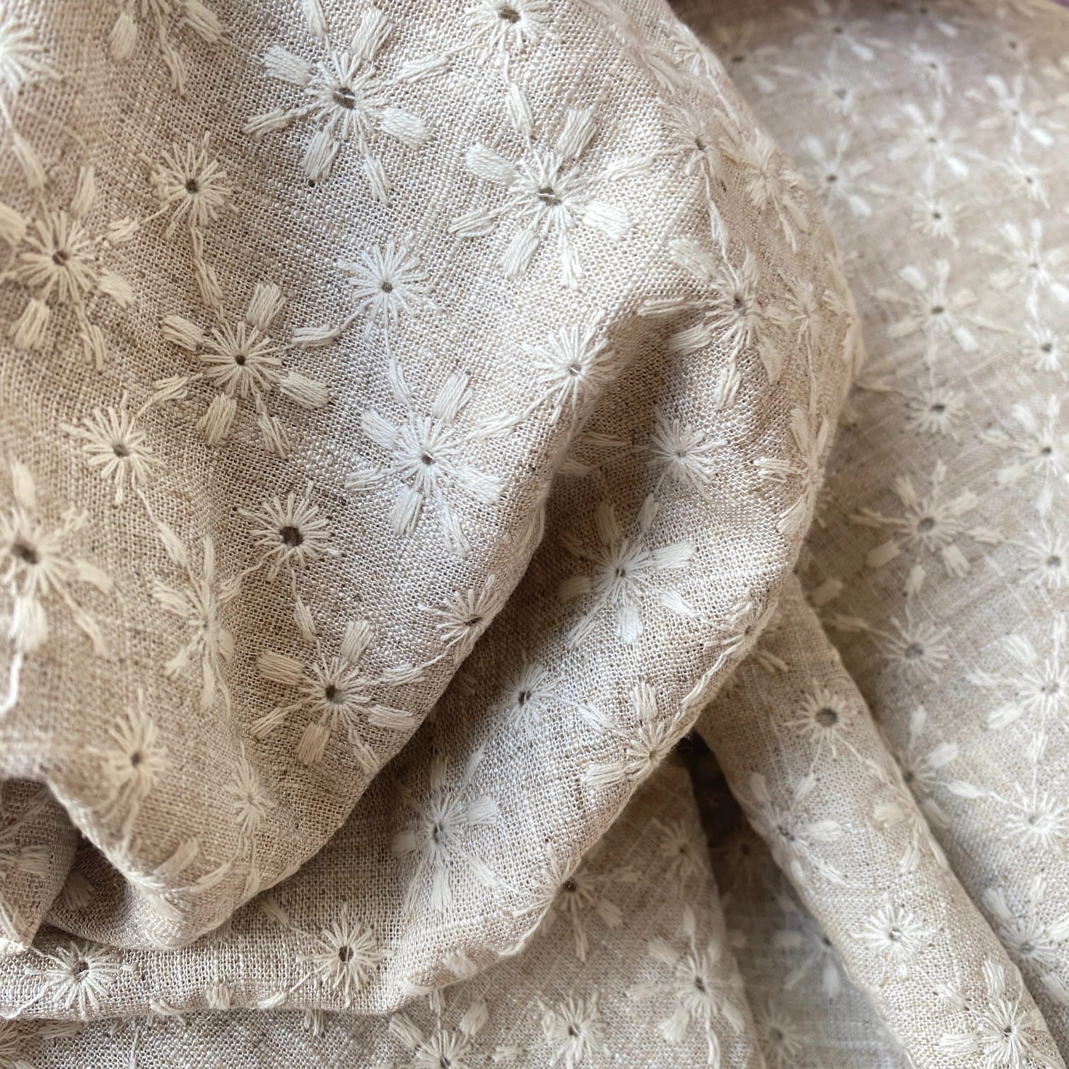 Tkanina Lniana Z Haftem Angielskim Naturalna - Loya