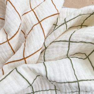 Tkanina Muślin Double Gauze W Kratę - Brąz