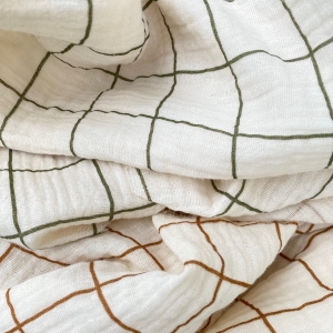Tkanina Muślin Double Gauze W Kratę - Zieleń