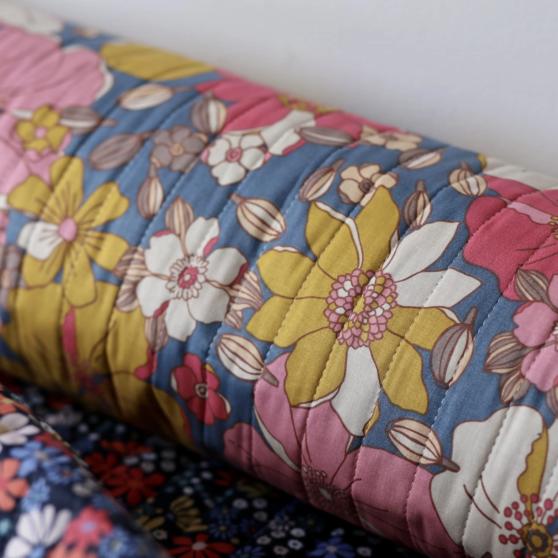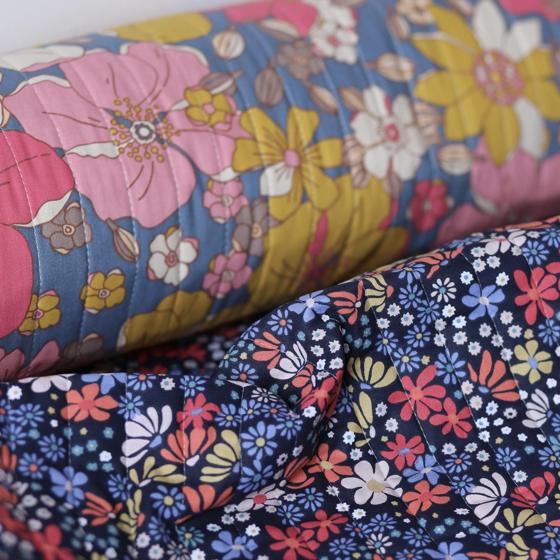 Tkanina pikowana, wypełniona lekką watoliną. Każda ze stron to inny, idealnie pasujący do drugiej wzór :)
