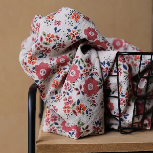 Muślin Drukowany Jasnoróżowy Organiczny - Delice