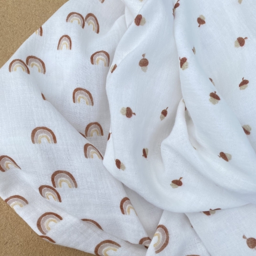 Muślin Drukowany Double Gauze Bio Żołędzie