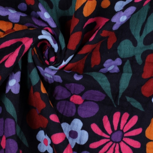 Muślin Drukowany - Kolorowy Nadruk Łąka Kwietna Na Białym Tle
