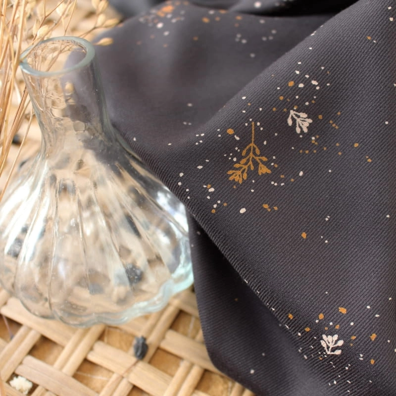 Wiskoza z najnowszej kolekcji CAPSULE od Atelier Brunette to delikatny print na wiskozowym skośnym splocie.